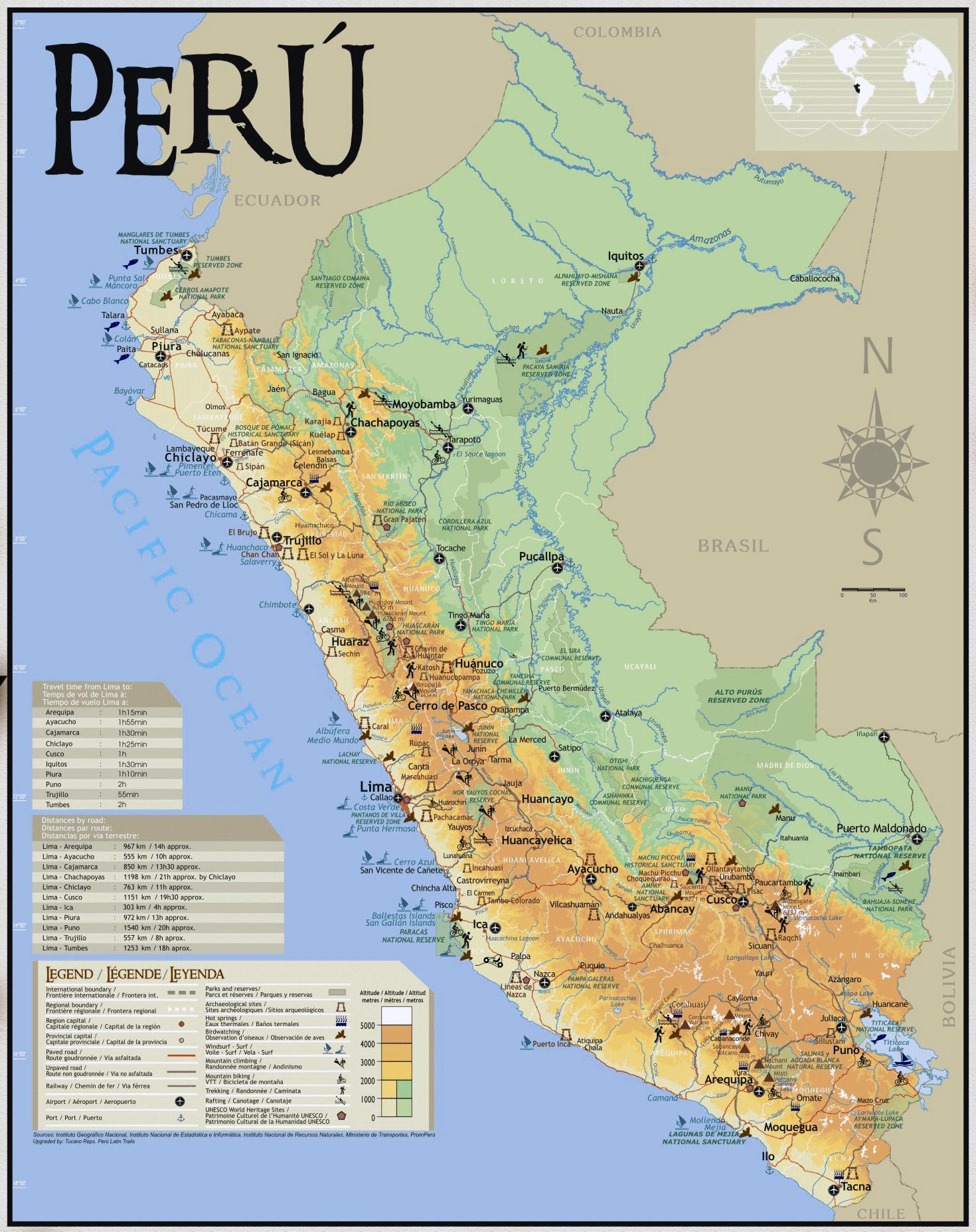 Kat jeyografik nan Perou vwayaje. Pewou yo vwayaje kat jeyografik (Amerik di Sid - Amerik) ekri ak lèt detache. Pewou yo vwayaje kat jeyografik (Amerik di Sid - Amerik) pou download.